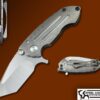 The White Swan is one of Allen’s new Models . This Swan Features a dual finish Stainless Steel Damascus blade , the scales are Black Pearl carbon fiber with anodized Titanium liners and sporting new style hardware and roller clip. Weighs in at 5.8 OZ