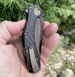 This is a vintage Tony Marfione Mini Matrix ! Featuring a hand ground CPM 154CM blade with Casidiam Hard Carbon Coating , the scales are 20K Carbon Fiber with heat colored Titanium hardware. Comes with original Box and Case . Clip Reads A.Marifone 2013.