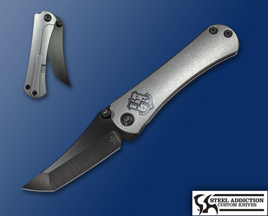 The SBHK offers a Chisel Ground Black DLC coated M390 blade that is SCARY sharp, the frames are stone washed 6AL4V Titanium with the Borka Blades etched logo. Comes with padded case and D.O.B. card.
