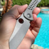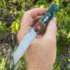 The Trico is a new model from Chad ! This Trico features a hand rubbed AEB-L blade running on bearings , the scales are premium Ironwood with Zirconium bolsters back spacer and clip accented with a Copper pivot ring. The overall fit and finish on this piece is superior, Chad’s placement of the front flipper tab is perfect , the Trico has effortless flipping action and is truly a perfect size for everyday carry. Comes with C.O.A card and Makers embroidered case.
