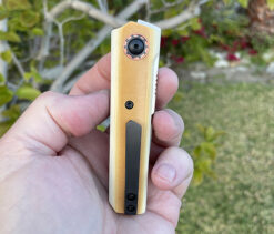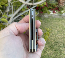 The Podium V2 is a new model in Chad’s line up ! This piece features a hand rubbed multi grind AEB-L blade gliding on bearings , the scales are polished Westinghouse Micarta with Black liners, Jeweled Titanium Liners and a custom inlaid Westinghouse Micarta pivot . The Westinghouse Micarta is accented by Copper Pivot Rings Zirconium clip and a polished Westy back spacer , this piece just feels amazing in your hand . The overall build is Top Tier , comes with Makers embroidered case and C.O.A. Please Check Our Video 🙂