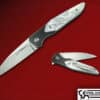 This piece features a CPM 154 CM blade with tapered tang, the scales are Desert Ironwood with red liners and mirror polished stainless steel bolsters. Comes with clip on custom Dangler sheath.
