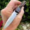 Designed By Tashi and produced by the Custom Knife Factory , a muscular folder that has a excellent ergonomics. This piece features a stone washed M390 blade on bearings , the frames are milled and blasted with anodized flats . Comes with Makers case C.O.A. card and clot and extra hardware.