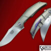 Some amazing work from Darriel at D Rocket Designs ! The Kadima Dead Astronaut flipper offers a Laser Etched m390 blade , the frame is heat colored Timascus with Pivot collar . Super smooth pivot with excellent flipping action , truly a piece of jewelry that is razor sharp . Comes with leather clip in sheath.