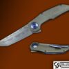 This is a one off Dominator sporting a dual finish S35VN blade , the frames are milled Titanium Satin flats and stone washed fullers. Weighs in at 5.4 OZ.