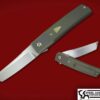 This Inglorious offers a custom San Mai blade with Stainless Steel and a Carbon core 80cvV2 for ease of sharpening , the bolsters are David’s own custom Mosaic Damascus. The Scales are Amber Jigged Bone with stainless liners and spring , and the lock is a French Notch with stop pin . Virtually the same as a slip joint with very strong Walk and Talk . David’s fit and finish is Top Tier , very high level with great attention to detail. Comes with his custom leather slip sheath , his leather work is excellent.
