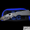 The Crossfire features a satin S30V blade running on the IKBS bearing system , the scales are contoured and anodized 6AL4V titanium with fuller . Super fit and finish , crisp flipping action with a dead centered blade .
