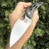 The ELEANOR Flipper has brought out the talents of maker and designer , David’s overall build quality is excellent , the hand rubbed satin finish on the blade is among the best I have seen. The blade is riding on bronze washers , the flipping action is crisp. Tashi has once again captured a ergonomic flowing design, this piece feels great in the hand and is very pleasing to the eye. Clipped for tip up carry and weighs in at 6.0 OZ.