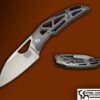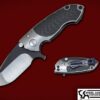 The S-95 is a new model from Eric at DireWare , the overall build quality is superior . This piece is sporting a satin titanium back spacer with a hand rubbed titanium frame with orange and black carbon fiber dual inlays , the blade is riding on a caged bearing system making the flipping action crisp and effortless . Can be clipped for tip up or tip down carry , weighs in at 7.8 OZ.