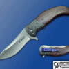 This piece features a S30V blade with mirror polished bevels and hand rubbed satined flats , the bolsters are anodized satin Titanium with Buckeye Burl scales and jeweled anodized Titanium liners. The fit and finish on this piece is superior , dead centered blade with early lock up.