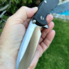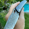 The Recluse is a muscular folder with some great ergonomics! Featuring a DLC coated CPM 154 blade on bearings , the frames are sculpted and dimpled 6AL4V Titanium with a partial back spacer / window breaker . Comes with Original Pelican case, patch and Certificate Of Authenticity.