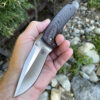 The Scorn features a satin S45VN blade running on bearings, the scales are Black linen micarta with Titanium bolsters . Excellent fit and finish , a dead centered blade with Dustin’s multi layered back spacer and lanyard. The only screw visible is the Pivot , the rest of the hardware is hidden. Please Check Out Our Video 😉