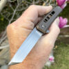 The Apache front flipper is a Classic model from Enrique’s catalog , patterned after Enrique’s Apache traditional slip joint profile. This piece offers a hand rubbed CPM 154 blade on bearings , the scales are Burlap Micarta with Natural Micarta bolsters and white Liners. Well balanced flipping action with a fall close , comes with Makers Embroidered case.