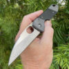This Swayback offers a hand rubbed CPM 154 blade on bearings ,the scales are Natural Micarta with Heat Colored Mokuti bolsters and clip. Effortless flipping action with a fall close 😉 Comes with Makers embriodered case.