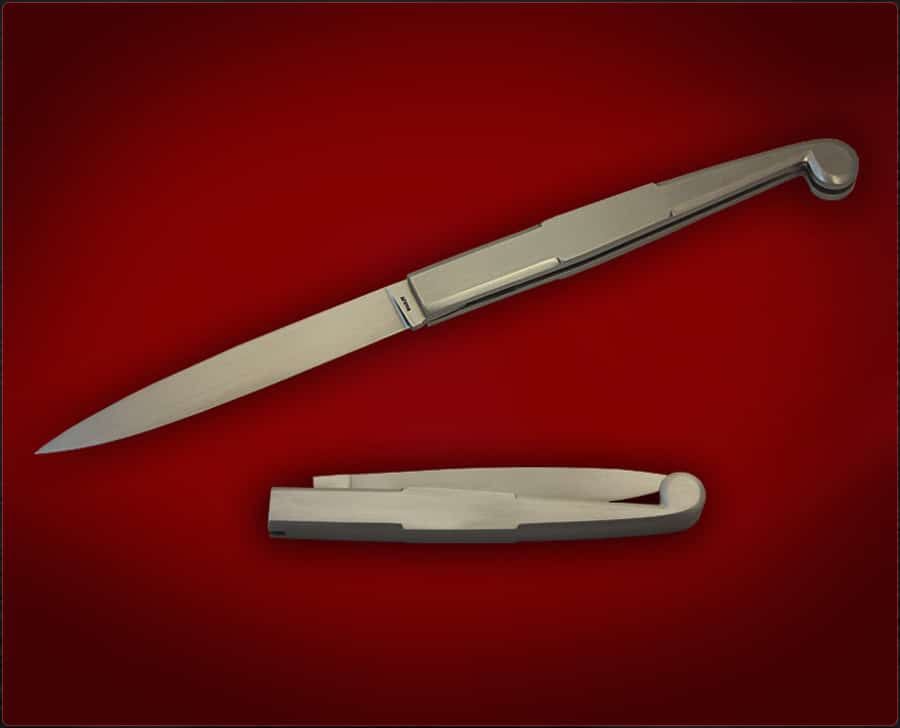 A classic model from Eugene featuring a hand rubbed RWL-34 blade , the frames are hand rubbed 416 Stainless Steel .