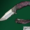 The Stubby RAZELCLIFFE flipper features a CTS-HXP blade with hand rubbed satin flats satin bevels , the scales and back spacer are orange peeled 6Al4V Titanium . The blade is riding on a caged bearings , clipped for tip up carry with Jon’s patented tail clip. Weighs in at 3 OZ.