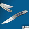 You can see both makers influence on the Milano! Featuring a dual finish 154 CM blade ridding on caged bearings , the frames are hand rubbed milled Titanium with anodized highlights . Excellent flipping action with a fall close , comes with Makers case and Dog Tag . This is SERIAL #1 🙂