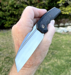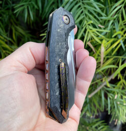 The WARMTAK features a hand rubbed RWL 34 blade running on Ceramic Bearings , the scales are Carbon Fiber with polished Mokuiti Pivot Ring back spacer and clip.. The overall build is excellent , crisp flipping action with a super smooth pivot and fall close . Please check out the video 😉 Comes with Embroidered Makers case and C.O.A .