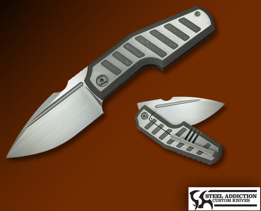 The Elementak offers a hand rubbed RWL 34 blade running on Bearings ,the frames are milled and stone washed Titanium with custom pivot and hardware . Please check out Our video Shot In HD 😉 Comes with Embroidered Makers case and C.O.A.