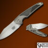 The Nebo offers a hand rubbed S45VN blade running on bearings , the scales are Vintage Micarta with custom Pivot, layered back spacer and lanyard. Superior fit and finish , comes with Leather Carry sheath by Greg Stevens Design and Embroidered Hanky , D.O.B. card and box 🙂