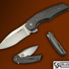 This Leviathan offers a chisel ground RAZOR sharp D2 blade , the frames are milled and anodized stone washed Titanium with partial Titanium back spacer and gold accents . The fit and finish is Top Tier , the knife has some great ergonomics.