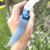 This Arrestor features a satin 3V Blade on bearings , the show side scale is contoured Green Linen Micarta , with a dark stone washed contoured Titanium lock side. Offering a nicely centered blade with a snappy detent.