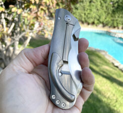 The Columbian features a 3/16 stock CPM 154 blade with a hand rubbed satin finish , the frames are fully contoured stone washed Titanium with sculpted clip and domed pivot. Hand Signed by Maker Lock Side internal face , along with build date 5-20-20. Top Tier fit and finish , comes with maker’s case.