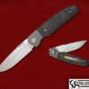 This piece is sporting Chad Nichols Digi Cam Stainless steel damascus gliding on bearings , the scales are milled and anodized Titanium with custom clip and stepped Titanium back spacer. The overall fit and finish is top of the food chain. Clipped for tip up carry, weighs in at 6 3/8 OZ.