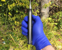 The Hammond SEALTAC optioned Military grade features a .250 S30V Micro Bead blasted blade with tapered tang , the scales are GROOVED Black linen Micarta which is a option that improves grip. This piece comes with a RARE custom Hammond Tri Positional leather sheath .