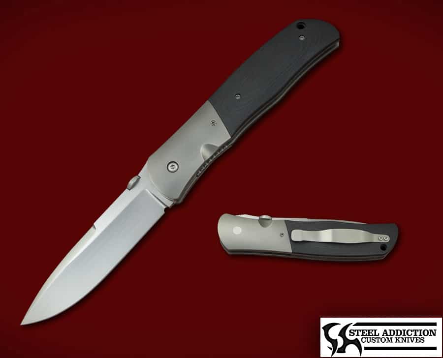 This SD-3 is sporting a hand rubbed S35VN blade , the scales and back spacer are Black G10 . The fit and finish on this piece is superior. Clipped for tip up carry, and weighs in at 6 OZ.