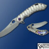 The MK3 folder design was based on the M3 knife from WW2! This MK3 features a stone washed Magnacut blade riding on Bronze washers, the frames are milled DLC coated Titanium with Les’s MORPH pattern and thumb disc deployment. A perfect EDC , rides well in the pocket. Please Check Out Our Video , Shot in HD 😉