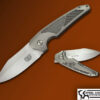 The MK3 folder design was based on the M3 knife from WW2. This MK3 features a stone washed Magnacut blade riding on Bronze washers, the frames are milled stone washed Titanium with thumb disc deployment. A perfect EDC , rides well in the pocket.
