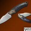 The MK3 folder design was based on the M3 knife from WW2! This MK3 features a stone washed Magnacut blade riding on Bronze washers, the frames are DLC coated milled Titanium with Les’s Double Diamond pattern and thumb disc deployment. Comes with Extra clip.