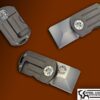 This Full Dress Kwaiken features a stainless steel damascus blade on bearings , the scales are wood grain anodized Titanium with heat colored Mokuti bolsters . The Liners and back spacer are frosted and anodized Titanium . The wood grained Titanium gives this piece a great feel in the hand , the overall build quality is superior . Weighs in at 4.7 OZ.