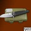 This piece offers a satin D2 blade on nylon washers , the frames are stone washed 6AL4V Titanium with American Flag . Comes with original box and packing ,C.O.A and patch.
