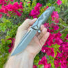 The Blade on the Strike Plate consists of Beta Titanium used in level IV Strike Plate Armor , the blade is chisel ground with a carbide edge and is razor sharp. The scales are Mick’s Concealed Carry version that are fully contoured and Heat Colored Titanium. Comes With Custom Strider Case .