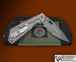 This SMF features a CTS XHP Grid Pattern blade with Mick’s Spear Point Grind and serrations ridding on bronze washers , the frames are Titanium with the Double Gunner Grip Texture . The overall build is outstanding, complete with HAND SIGNED Tang. Comes with SOE Custom case, PLEASE Check Out Our Video 🙂