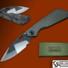 This XL features Mick’s Modified Tanto grind in 20CV with a Tiger Stripe finish , the frames are Double Gunner grip Titanium with Laser Etching. Offering a dead centered blade with bank vault lock up, comes with custom Strider case and patch.