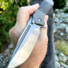 The X-Series Designed by Errique Pena and produced by Reate Knives ! The Dogleg Jack front flipper features a satin Bohler M390 blade riding on bearings , the scales are Brown Micarta with a Titanium bolster, back spacer and clip . Can be opened utilizing the index finger or the thumb , the fit and finish on the X-Series is Fantastic.