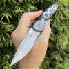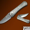 A rare Cayman XL featuring a satin CPM 154 blade riding on nylon washers , the scales are Black Timascus with Zirconium Bolsters and clip . Accented by Black Timascus Pivot Rings and a Mokuti Dragon Spine back spacer . Comes with custom case with D.O.B. Card dated 10/11/13, Please Check Out Our Video 😉