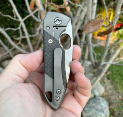This DRUID features a satin CTS-XHP blade running on bearings , the Integral frames are bead blasted with Lightning Strike Carbon Fiber inlays. Comes with original box and packing. Please check out our video 🙂