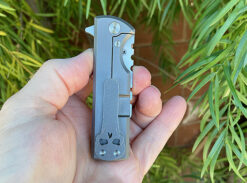 This is the latest version of the C.H.U.B. (CHAVEZ HANDY UTILITY BLADE) The C.H.U.B Flipper features a replaceable utility blade , the show side is Green Micarta with a stone washed Titanium lock side and Skull clip (comes with regular clip as well . Strong flipping action , PERFECT for all cutting chores . Please Check OUT Our Video 😉