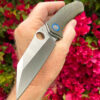 This is a unique model from Randy’s catalog , it features a multi grind S30V tumbled blade on Bronze washers . the scales are Earth Brown G10 with Carbon fiber bolsters . Sporting a deep file worked thumb ramp , super fit and finish with quick and effortless flipping action.
