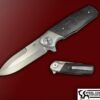 The Triple Grind OUTLAW features a satin cpm 154 blade , the bolsters are hand rubbed satin titanium . The full titamium back spacer is stepped and anodized , the blade is rinding on a caged bearing system . Clipped for tip up carry and weighs in at 8.2 OZ.