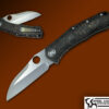 This piece offers a 1084 forged steel blade in just over 3/16 in stock with Hamon temper line , the scales are Black carbon fiber . Full Tang construction , comes with custom leather sheath.