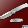 The SKULLTAP features a 1095 blade with a deep Hamon Temper Line , the grinds on this piece are incredible. The titanium frame is stone washed with a anodized pivot and domed back spacer , the blade is riding on a caged bearing system making the flipping action wicked fast. Clipped for tip up carry , and weighs in at 10.1 OZ.