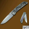 This SEEKER features a hand rubbed CPM 154 blade on bearings , The scales are Carbon Fiber with Super Conductor bolsters and contrasting anodized hardware. The Titanium liners and filed worked back spacer are anodized blue , the fit and finish is Top Tier . Weighs in at 5.5 OZ.