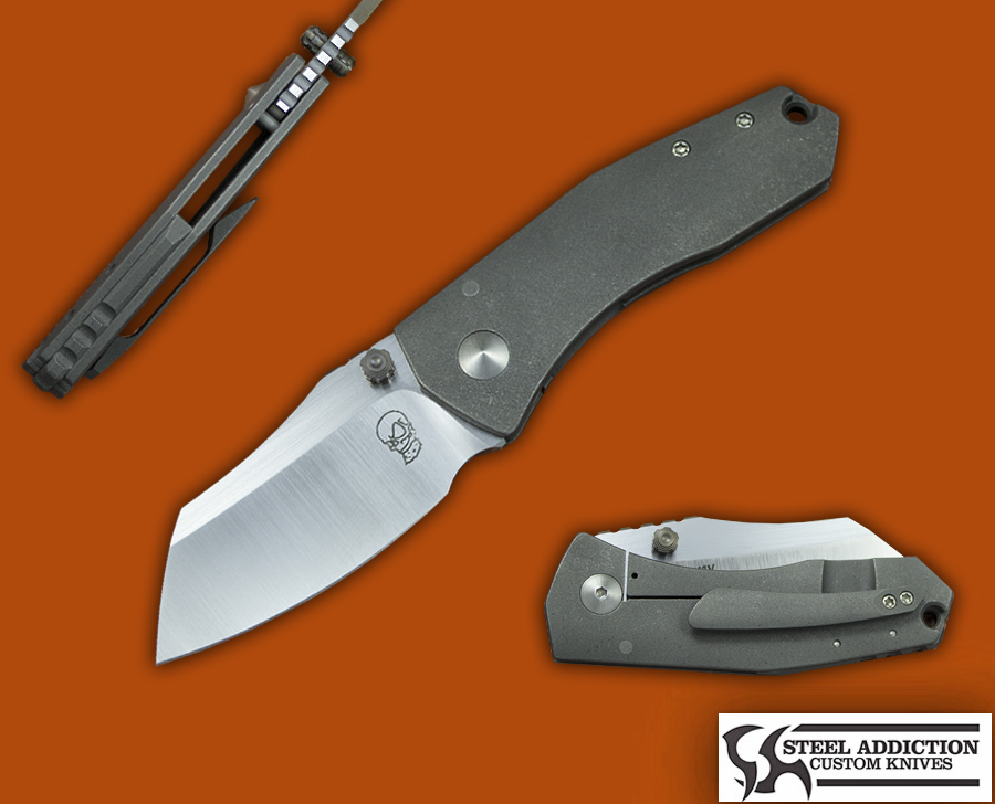The REACT V2 features a satin CPM 3V Blade on Bronze washers , the frames are stone washed 6AL4V Titanium with a raised milled back spacer . The fit and finish on this piece is Excellent , offering a dead centered blade smooth lock release and snappy detent . Comes with C.OA. dated 9-30-19.