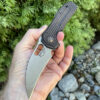 This Strider XL features a hand ground CPM D2 blade with Strider’s DIGI-CAM finish , the Titanium frames are Mick’s Double Gunner Grip texture with custom Titanium Pivot.
