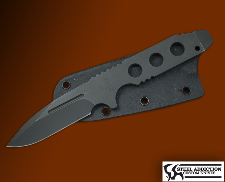 A rare piece offering a CPM 154 Black Oxide blade , full tang constriction in 3/16th stock . Comes with custom kydex sheath , a perfect piece for your Strider collection .
